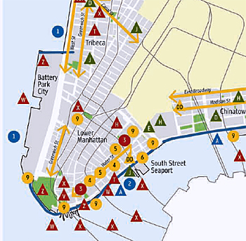Flood protection measures for Southern Manhattan as proposed by mayor Bloomberg in June.(blue line is the suggested levee)