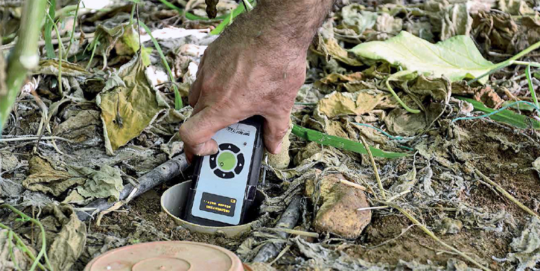 Based on the average moisture content, the hand meter gave an irrigation advice (yes/no watering and duration), taking into account soil type, crop type and cropping stage.